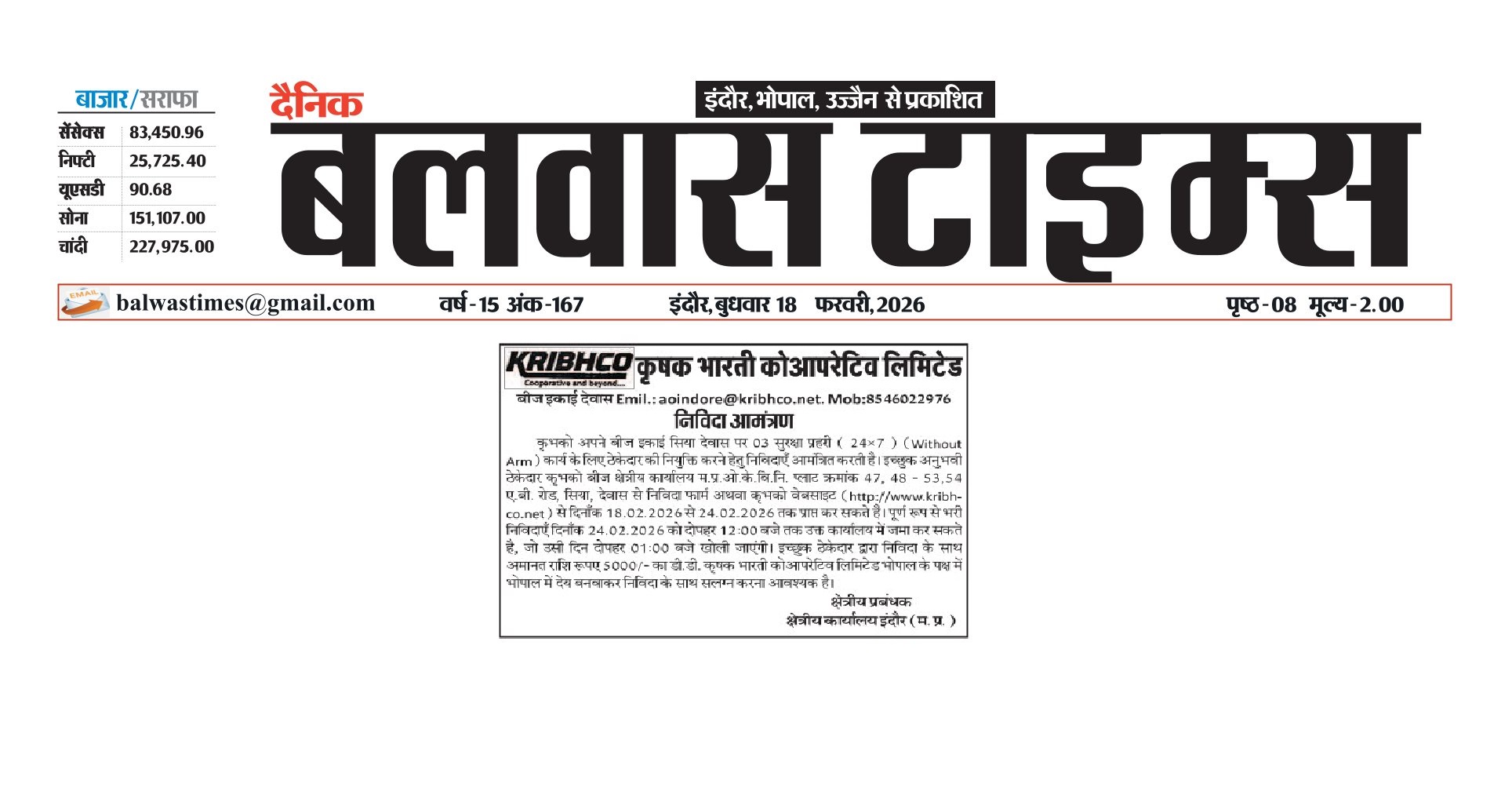 | 5. | NIT for hiring security guards at SPU Unit Dewas |