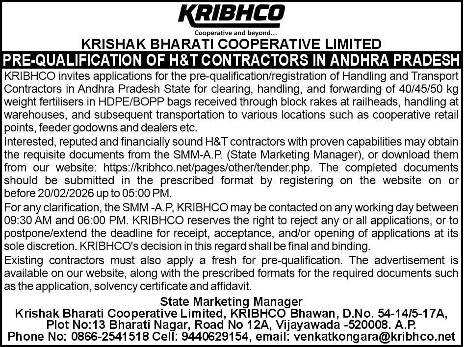 Advertisement(English) Advertisement(Telugu) Application Form Application Affidavit Solvency Certificate |
